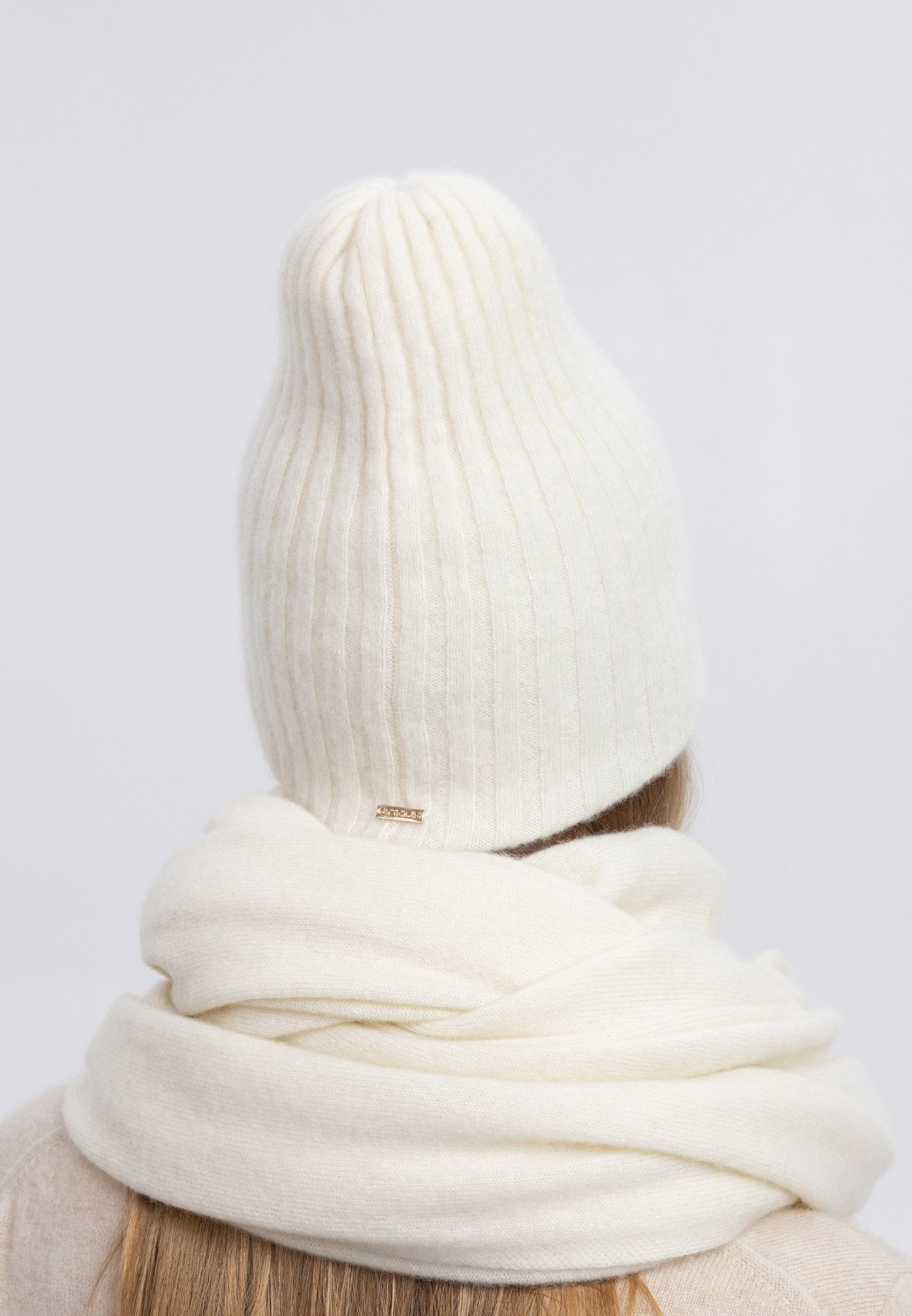 Мягкая и уютная шапка связана из премиальной пряжи. Шапка двухслойная, с отворотом, выполнена в пластичным ластичным переплетением