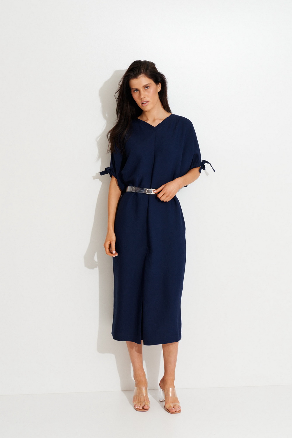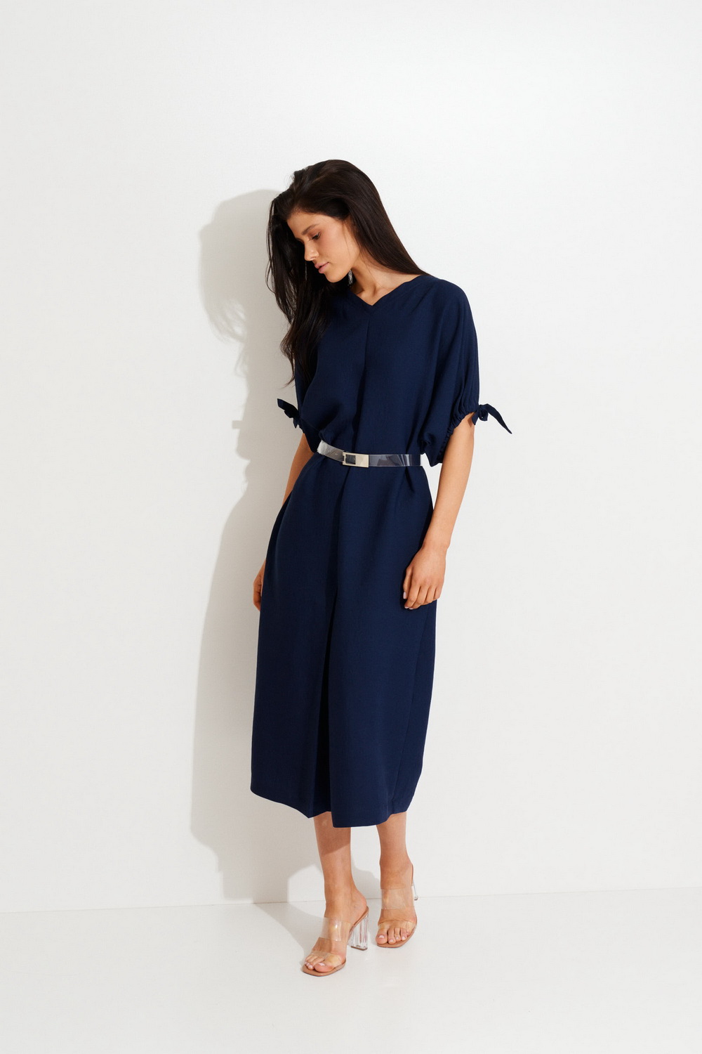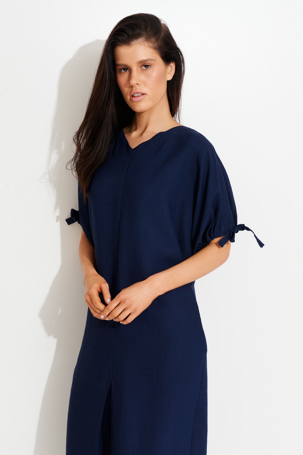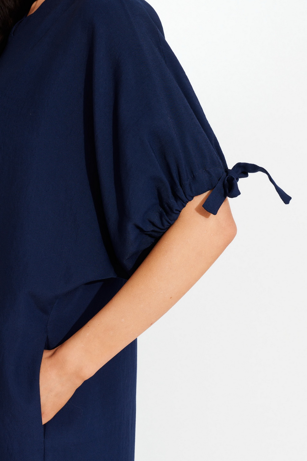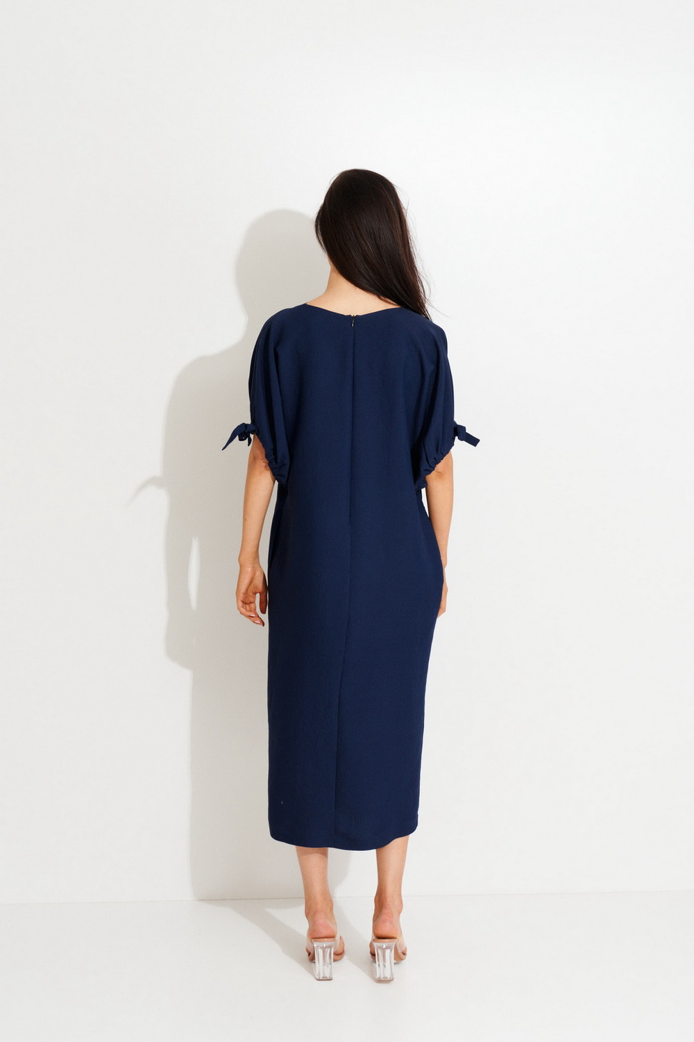 - Платье прямого силуэта с цельнокроенным рукавом до середины локтя.