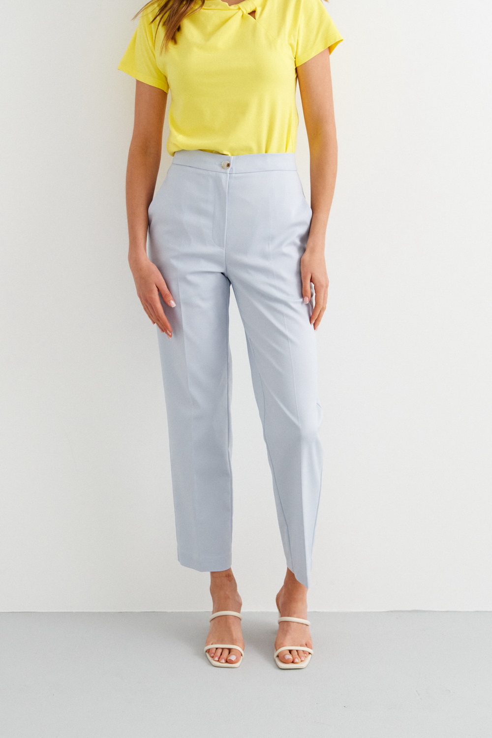 Брюки из однотонной костюмной ткани,прямые,зауженные к низу.